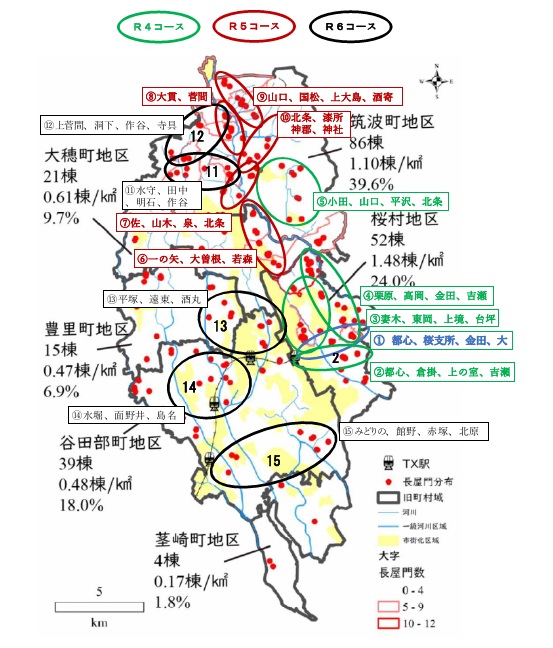 作成コース:15,実施済みコース:②~⑮,未実施コース:①                 訪問した長屋門 合計 162門(2024.12.15現在)